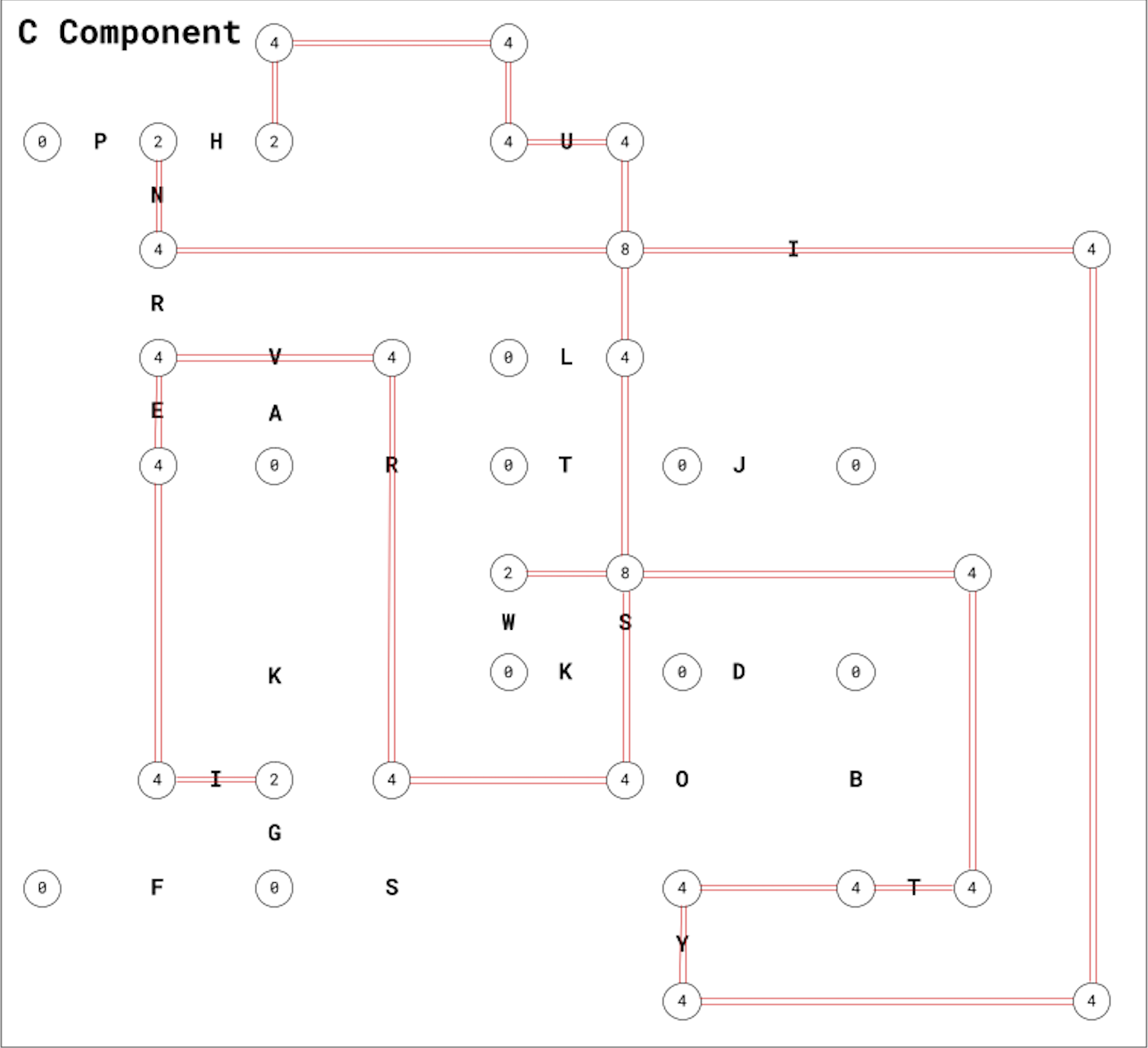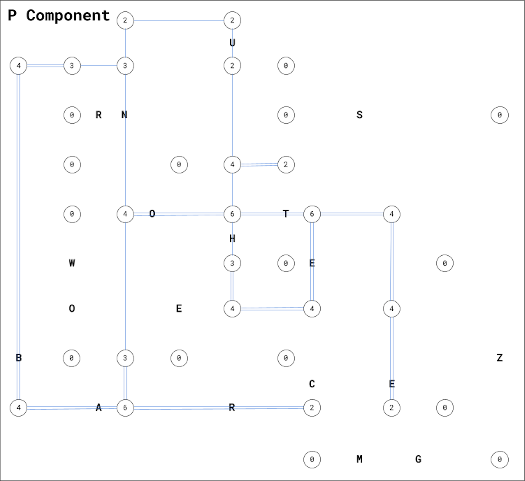 Since solving a Hashi puzzle told the puzzler which nodes were connected, I decided that for final answer extraction, I’d scatter letters in the Hashi puzzles, and puzzlers would check which letters were intersected by a Hashi edge. Here are the final Hashi solutions and extraction[4]: