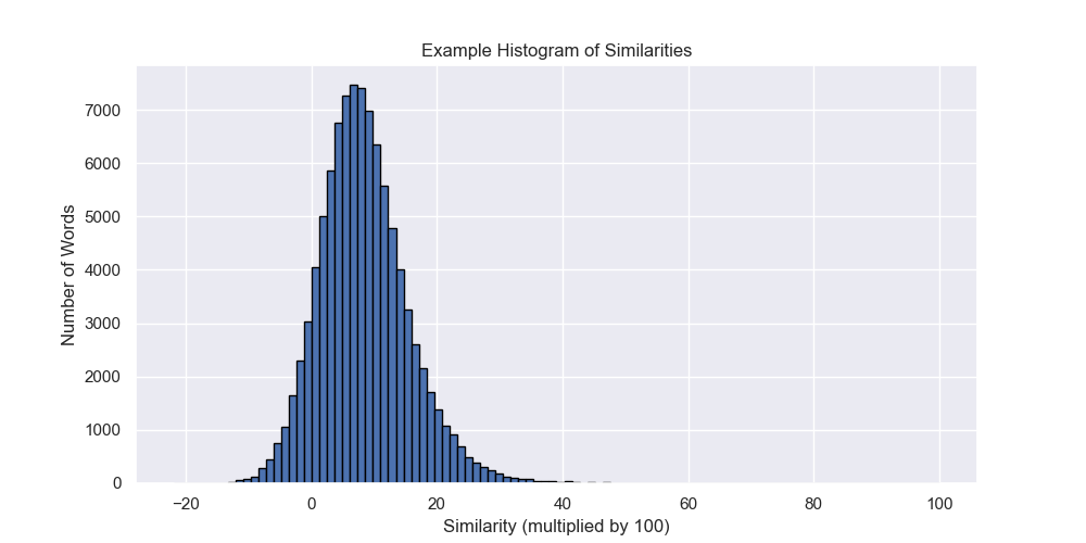 - Whenever the game says that the guess is the nth closest word to the target, the game only considers single English words. That means even if “taylor swift” is the closest term in the embedding space (and could be guessed!), it’s not considered in the top 1000 words (here’s an example of a list). This assumption will be useful in the “Solving in One Guess?” section!